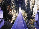とりあえず高さ70m長さ137mの吊り橋だ(写真左右)。思ったよりも恐いという感じはなく、つかまらないでも大丈夫。橋の中央附近で渓谷の底を撮ろうとカメラをかまえるが、揺れているのでだめだ。さっきの女の子もすぐ横でカメラをかまえたままシャッターをきれないでいる。そんな所に反対側から10代前半位の悪ガキ軍団登場。揺らす揺らす。これでもかというほど揺らす。これには流石につかまらないと立ってられない。隣の女の子はとうとう座り込んでしまい、ちょっとむっとした様子だが、特にわめくでもなくなかなかたくましい。俺も嫌いじゃ無いので揺れを楽しんでいたが、隣の女の子のにらみが効いたのか、揺らすのをやめた。と思いきやスレ違ってからしばらくして再開。なかなか微笑ましい悪ガキっぷりで笑えた。